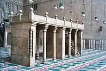 A dikka or dakka (Arabic: دكة),[1][2] also known in Turkish as a müezzin mahfili,[3] is a raised platform or tribune in a mosque from which the Quran is recited and where the muezzin chants or repeats in response to the imam's prayers.[4][5][3][6] It is also used by the muezzin to chant the second call to prayer (iqama), which indicates to worshippers that the prayer is about to begin.[2] On special occasions or evenings, such as during the month of Ramadan, expert or professional Qur'an reciters also use the platform to chant parts of the Qur'an.[2] It is also known as the mukabbariyah (Arabic: مكبرية) in the Prophet's Mosque in Medina.[7]