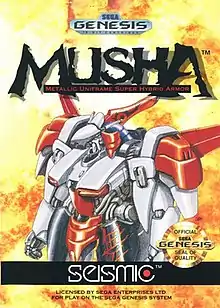 MUSHA[lower-alpha 1] is a vertically scrolling shooter developed by Compile and released for the Sega Genesis in 1990. An entry in Compile's shooter series, Aleste, MUSHA places the player in the role of a flying mecha pilot who must destroy a large super intelligent computer threatening planet Earth. The game had a working title of Aleste 2 and originally featured a style similar to the first game, but this was changed to a more original Japanese aesthetic and speed metal soundtrack.