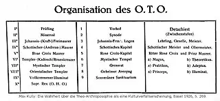 Organisation of O.T.O., the diagram (from 1926) in German shows the organization's original structure.[6]