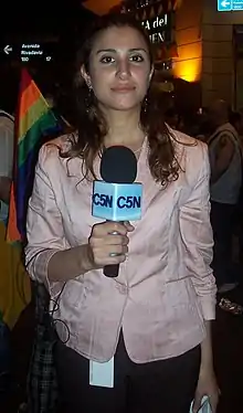 She hosted Televisión Pública Argentina's Desde el aljibe, a program for the Argentine Arab community, since its inception in 2002, along with journalist Roberto Ahuad.[3] She also worked as an international journalist at the Argentine news channel C5N since its creation in 2007. She was sent to cover the presidential tours of Cristina Fernández to Africa in November 2007 and Arab countries in 2010. In 2010 she became the host of Resumen de medianoche, the channel's early morning news program.[3]