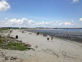 Nahant Beach Reservation is a protected coastal reservation covering 67 acres (27 ha) of beach and recreational areas in the town of Nahant, Massachusetts. Nahant Road, formerly known as Nahant Beach Boulevard when it was added to the National Register of Historic Places in 2003, offers access to 7,000-foot-long (2,100 m) Long Beach on the Atlantic Ocean side to the east. The reservation includes a boat ramp with access to Lynn Harbor and shares athletic fields with Lynn Shore Reservation in the area around Nahant Rotary, a traffic circle at the reservation's northern end.[3][4] The reservation is part of the Metropolitan Park System of Greater Boston.