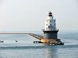 The National Harbor of Refuge and Delaware Breakwater Historic District encompasses a series of seacoast breakwaters behind Cape Henlopen, Delaware, built between 1828 and 1898 to establish a shipping haven on a coastline that lacked safe harbors. The Harbor of Refuge is at the mouth of the Delaware Bay estuary where it opens into the Atlantic Ocean, at Lewes.
