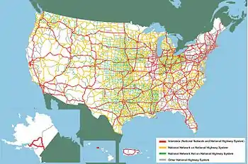 - ↑ "Our Nation's Highways: 2008 Figure 1-4. National Truck Network". U.S. Department of Transportation, Federal Highway Administration. Retrieved 2009-03-08.
