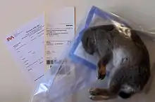 Frozen rabbit ready to be sent to the Swedish Veterinary Agency.