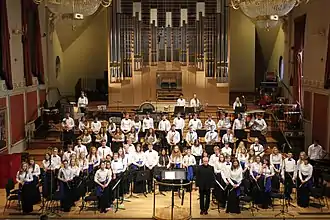 The National Youth Wind Orchestra of Great Britain (NYWO) was originally named The British Youth Wind Orchestra[1][2] when founded by clarinettist Eric McGavin in 1968.[3] Stephen Dodgson(Chairman),[4] Andrew McGavin, Robert Montgomery and Leonard Salzedo established it as a charity on 1 January 1986 and registered it with the Charity Commission on 28 February 1986. Formed as the British Youth Wind Orchestra by Eric McGavin (Musical Director 1968–1970) and Harry Legge (Principal Conductor 1968–1989),[5] it was renamed, National Youth Wind Orchestra of Great Britain (NYWO) in 1986. Almost 5,000 young players have enjoyed music making in the orchestra, progressing to study at the UK's conservatoires and working in orchestras, ensembles and organisations music industry. NYWO's Vice Presidents are Andrew McGavin, Timothy Reynish and Prof. Jonathan Freeman-Attwood. Other Directors have included Kit Shepherd (1990 – 2013).