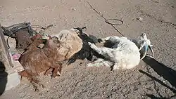 Although winters are generally cold and clear, and livestock can survive, under various weather conditions livestock are unable to graze and die in large numbers.[2] A winter in which this occurs is known as a zud; causes include blizzards, drought, extreme cold, and freezing rain.[11] Such losses of livestock, which are an inevitable and, in a sense, normal consequence of the climate, have made it difficult for planned increases in livestock numbers to be achieved.[2]