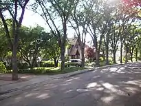 The Crescents, taking its name from Leopold, Angus and Connaught Crescents, the principal residential streets in the precinct, is the historically most desirable residential area of Regina. In zoning parlance a part of the "Cathedral area," it is a discrete residential zone, its posh 1920s villas, mock-Tudor ambience and large lots a striking contrast to the more matter-of-factly working persons' housing of the 13th Avenue neighbourhood. It made the list of "Best Old House Neighborhoods 2011: City Living" in This Old House Magazine.[4]