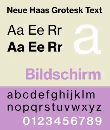 - ↑ "Neue Haas Grotesk Specimens" (PDF). Retrieved 2022-06-24.