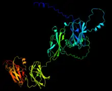 3D protein structure of the NDNF gene as based on the alpha fold model.