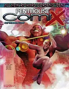 - 1 2 3 4 Strnad, Jan (w). "Denz" Penthouse Comix, vol. 2, no. 15, pp. 4–13 (September 1996).