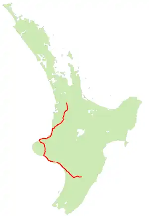 State Highway 3 (SH 3) is one of New Zealand's eight national state highways. It serves the west coast of the country's North Island and forms a link between State Highway 1 and State Highway 2. Distances are measured from north to south.