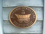 A Historic Preservation Commission plaque, that all buildings carry, in the Newtown–Stephensburg Historic District in Stephens City.