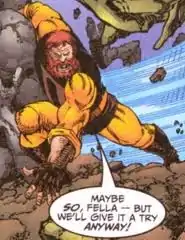 Dennis Dunphy was born in Lincoln, Nebraska. Dennis becomes an aspiring athlete who receives the strength augmentation treatments offered by Power Broker, Inc. Finding himself too strong now for normal sports, he becomes a professional wrestler and member of the Unlimited Class Wrestling Federation (UCWF) along with other superheroes and supervillains such as the Beyonder, the Thing, and Screaming Mimi. He refuses to throw a fight with the Thing, and is defeated.[3] The Puppet Master later mentally compels him to attack the Thing.[4] Dunphy refuses the Power Broker's order to help kill Ms. Marvel. He reveals his addiction to the Power Broker's drug to the Thing, and goes through a painful withdrawal when the Power Broker cuts off his drug supply.[5]