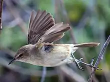 Nihoa's inaccessibility and lack of major guano deposits made the island unattractive to humans, helping to preserve its endemic species from extinction. Because of Nihoa's small size, most of its endemic organisms are endangered, as one single disaster such as an island-wide fire or an introduction of invasive species could wipe out the whole population. One such invasive species is the gray bird grasshopper, Schistocerca nitens; from the period between 1999 and 2003, grasshoppers devastated much of the vegetation on the island and posed a real threat to the continued health of plants on Nihoa.[6] The following year, the numbers decreased and the vegetation became lush again. The grasshoppers probably came to Nihoa by way of wind from Kauai.