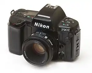 The Nikon F90 (known as the N90 in the United States) is a 35mm SLR camera manufactured between 1992 and 2001 and replaced the earlier Nikon F-801 (N8008 in the U.S.). At the time of its release it was noted for its fast autofocus speed compared to previous Nikon models, which had lagged behind competitor Canon's. It was thus seen by many as a 'stop-gap' measure to prevent the mass migration of many Nikon-using professional photographers to Canon, as Nikon's next fully professional camera, the F5, was some time away from release. The Nikon F4, the professional model available at the time of the F90's release, had very slow autofocus compared to Canon's autofocus SLRs.