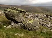 Many of the Silurian greywacke[2] boulders at the site are perched on pedestals of limestone up to 30cm high. The boulders were probably deposited by melting ice sheets at the end of the last ice age, around 12,000 years ago. The pedestals have developed because the erratic boulders have protected the underlying limestone from solution by rainfall, giving estimates of the rate of lowering of the surrounding limestone pavement of around 25mm per 1000 years.[3] Recent cosmogenic dating suggests that the boulders have been exposed for around 17,900 years.[4]