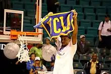 In 2013–14, Powell started all 37 games and was third on the team in scoring (11.4).[1] Under Alford, he became an offensive threat and a staunch defender.[7] He was more aggressive taking the ball to the basket, and dunked more than he could in Howland's system.[2][11][12] The team's best on-ball defender, Powell was routinely assigned the opponent's best offensive player and earned honorable mention for the Pac-12 Conference All-Defensive Team.[9][13] UCLA opened the 2014 NCAA tournament in San Diego, enabling him to play in his hometown for the first time since high school.[11] UCLA advanced to the Sweet 16, and Powell averaged 13.0 points and 2.7 rebounds in three tournament contests. After the season, he considered playing professionally in the National Basketball Association (NBA), and requested an evaluation of his prospects for the upcoming 2014 NBA draft.[14][15]