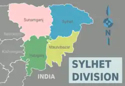 - ↑ Sajahan Miah (2012). "Sylhet Division". In Sirajul Islam; Miah, Sajahan; Khanam, Mahfuza; Ahmed, Sabbir (eds.). Banglapedia: the National Encyclopedia of Bangladesh (Online ed.). Dhaka, Bangladesh: Banglapedia Trust, Asiatic Society of Bangladesh. ISBN 984-32-0576-6. OCLC 52727562. OL 30677644M. Retrieved 14 January 2024.