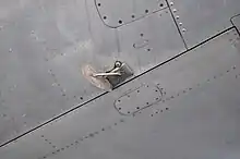 A problem with the refueling process caused a delay, so a second truck and then a third were brought to the aircraft to complete the refueling.[52] During the delay, Mucklow said Cooper complained the money was delivered in a cloth bag instead of a knapsack as he had directed, and he now had to improvise a new way to transport the money.[53] Using a pocketknife, Cooper cut the canopy from one of the reserve parachutes, and stuffed some of the money into the empty parachute bag.[54][55]