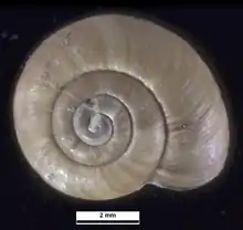 Notodiscus hookeri is a species of small air-breathing land snail, a terrestrial gastropod mollusk in the family Charopidae.[2] This snail lives on islands in the sub-Antarctic region. Its shell is unique among land snails in that the organic shell layers contain no chitin.