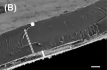 The micro structure of the shell was analysed by Charrier et al. (2013).[2] Their study was the first to demonstrate that gastropod shell micro structure responds to environmental heterogeneity, leading to the formation of ecophenotypes.[2] The adults of Notodiscus hookeri have evolved into two ecophenotypes, which the authors referred as MS (mineral shell) and OS (organic shell):[2]