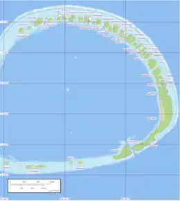 Nukuoro is an atoll in the Federated States of Micronesia. It is a municipality of the state of Pohnpei, Federated States of Micronesia. It is the secondmost southern atoll of the country, after Kapingamarangi. They both are Polynesian outliers. As of 2007, Nukuoro had a population of 372, though several hundred Nukuorans live on Pohnpei. Fishing, animal husbandry, and agriculture (taro and copra) are the main occupations. A recent project to farm black pearl oysters has been successful at generating additional income for the island's people.[1][2]