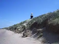Spurn in May 2005, showing the lighthouse and sand-dunes.