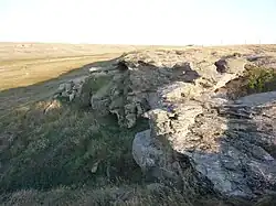![]() A photo of Old Woman's Buffalo Jump, an aboriginal bison drive near Cayley, Alberta. It is a National Historic Site of Canada | |