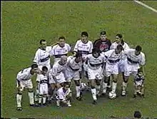 From 1994 to 1999, Olimpia would produce the debut of several youth team graduates and future national team players, such as Richart Baez (1993),[5] Denis Caniza (1994),[6] Carlos Humberto Paredes (1996),[7] Roque Santa Cruz (1997),[8] Ruben Maldonado (1997)[9] and Julio César Caceres (1999).[10] Baez was transferred to J1 League club Avispa Fukuoka whilst Santa Cruz, Paredes, Maldonado and Caceres were transferred to UEFA clubs. Five of the six players went on to play at FIFA World Cup tournaments for Paraguay. Olimpia also had won trophies in Paraguay's Primera División in 1993, 1995 and then consecutively from 1997 to 2000, before winning the Copa Libertadores de América in 2002.