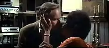 Whoopi Goldberg has remarked that the kiss between the characters played by Charlton Heston and Rosalind Cash was one of the first interracial kisses to appear in a movie.[10][11] In 1992, when Goldberg had her own network interview talk show, she invited Heston to be a guest, and asked him about the kiss. After discussing whether Heston received any flak for the kiss at the time, Goldberg said that she wished that society could get past interracial relationships being an issue, at which point Heston leaned forward and demonstrated on the unsuspecting Goldberg, to her delight.[12][13]