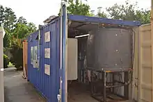 Scientists at Duke University in the U.S. have developed and are testing a pilot fecal sludge treatment unit that fits in a 20-foot shipping container and treats the fecal matter of roughly 1000 people using a new supercritical water oxidation (SCWO) process.[11] The SCWO technology can covert any type of organic waste (fecal, food waste, paper, plastic, etc.) to energy and clean water.[12]