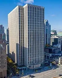 One60 Elgin (stylized as ONE60 Elgin), formerly Place Bell, is an office tower in Ottawa, Ontario, Canada. It is the 12th tallest building in Ottawa—Gatineau with a height of 94 metres (308 ft).[1] The 27-storey building stands on Elgin Street in downtown Ottawa, and is distinguishable by its wide stature (the building is unusually large in dimensions considering its height, presumably to avoid having a 50+ storey building greatly overshadow the Peace Tower).[2]