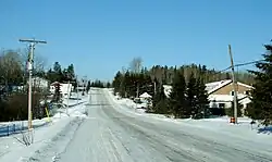 Highway 650 begins in the west at Highway 112, travelling southeast through the community of Dane. It passes several residences and turns east. The highway exits the community and crosses the Ontario Northland Railway (ONR), east of which the road is sparsely travelled. It zig-zags southeast through dense forest. After crossing a swamp, the highway curves to the northeast and passes beneath two high-tension transmission lines.[3] It then curves to the south, crossing a spur of the ONR built to serve the mine, after which the road is privately maintained.[1] The entire length of the route is paved.[4]