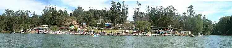 Ooty lake is an artificial lake near Ooty in the Nilgiris district of Tamil Nadu, India. It covers an area of 26 hectares (64 acres).[2] The boathouse on the lake is a major tourist attraction.
