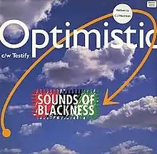 "Optimistic" is a song by American vocal and instrumental ensemble Sounds of Blackness, recorded for their debut studio album The Evolution of Gospel (1991). It was written and produced by Gary Hines, Jimmy Jam and Terry Lewis, and features vocals from Ann Bennett-Nesby, Carrie Harrington, Coré Cotton, Patricia Lacy, and Jamecia Bennett. The urban contemporary gospel song was released as the group's debut single and reached the top three on Billboard's Hot R&B Singles chart. A remake by August Greene featuring Brandy was released in 2018. Jadakiss also recorded a version of the song, titling it "Keep Ya Head Up". The song was included on his first album, Kiss Tha Game Goodbye.