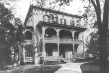 Orelia Key Bell was born in Atlanta, Georgia, on April 8, 1864, to Colonel Marcus Aurelius Bell (1828–1885) and Mary Jane Hulsey (1837–1901),[1] in the Bell mansion, a stately Southern home in the heart of the city built in 1860. The house became historic soon after Bell's birth, as the headquarters of General William Sherman's engineering corps led by Captain Orlando M. Poe, and the room in which she was born and spent the first three months of her life was that used by General Sherman as a stable for his favorite colt.[2] The house was made of "plaster-covered stone marbleized in shades of blue, yellow, and red" and thus nicknamed the "Calico House".[3] The house was demolished in 1925.[4]