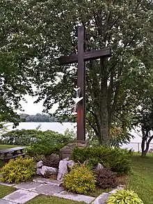 A memorial 20-foot (6.1 m) cross adorned with a model CF-101 Voodoo fighter aircraft, surrounded by 15 stones taken from the rubble of Villa St-Louis is dedicated to the memory of the fifteen victims of the Orléans Aviation Disaster. The memorial was erected behind Villa St-Louis on May 13, 2009, by a group of Orléans veterans and members of the Sisters of Charity of Ottawa.[1]