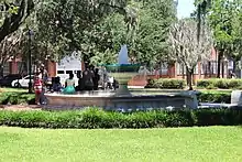 In the center of the square, the German Memorial Fountain honors early German immigrants to Savannah.[2] Installed in 1989, it commemorates the 250th anniversary of Georgia and of Savannah, as well as the 300th anniversary of the arrival in Philadelphia of thirteen Rhenish families.[3]