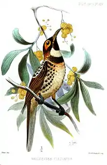 The ornate melidectes or ornate honeyeater (Melidectes torquatus) is a species of bird in the family Meliphagidae. It is found in the New Guinea Highlands. Its natural habitat is subtropical or tropical moist montane forest.