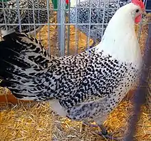 The Ostfriesische Möwe, Dutch: Groninger Meeuw, is an old German breed of domestic chicken. It is a rare breed: in 2016 the recorded population in Germany consisted of 215 cocks and 979 hens, in the hands of 130 breeders.[1]: 132 Its conservation status is gefährdet, "endangered".[1]: 132
