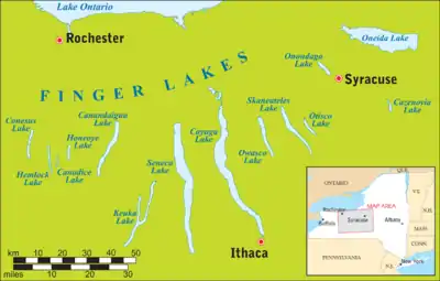Otisco Lake is the easternmost of New York's eleven Finger Lakes. The 2,048-acre (8.29 km2) lake is located in Onondaga County,[1] southwest of the city of Syracuse.
