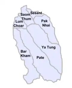 | Communes | Bar Kham, Lum Choar, Pak Nhai, Pate, Sesant, Saom Thum, Ya Tung |