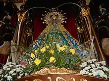 Our Lady of Salambáo (Spanish: Nuestra Señora de la Inmaculada Concepción de Salambáo; Tagalog: Mahal na Birhen ng Salambáo or Birheng ng Salambáw) is a Catholic title of the Blessed Virgin Mary venerated in Obando, Bulacan, Philippines. The Virgin Mary under this title is venerated as the local patroness of fishing, owing to the image's discovery in a salambáw, a type of big fishing net supported by bamboo crosspieces and mounted on a raft.[1]