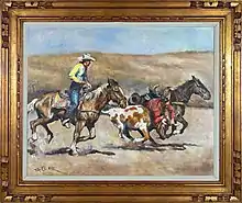 He worked in oils and pastels and experimented with light and movement. His oil paintings were usually of dancers, nudes, and portraits, and while his subjects were primarily female, he also painted Paris, seascapes, cowboys and landscapes of the American West as well as Orientalist subject matter. He signed his paintings, as is usual in Hungarian, with his surname first as "Fried Pál". At times, this particular artist would make several, almost identical versions of the same oil painting, except he would use slightly different facial expressions and/or would try different colour schemes.