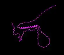 The secondary structure is characterized by high confidence in the presence of an alpha helix from amino acid 43 to 70 with the rest consisting of coils.[18] In terms of tertiary structure, predictive tools returned low confidence in all sections of the protein besides the core alpha helix.[19]