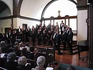 Pacific Edge Voices was formed, as Pacific Mozart Ensemble, in 1980 by members of Berkeley Chorus Pro Musica. The core group of singers had a history of singing together in the SF Bach Choir and the Presidio Protestant Post Chapel Choir. The decision to strike out on their own came when one of the members was informed that since he joined Pro Musica, there was “too much jocularity in the bass section.” Shortly thereafter they reemerged as The Pacific Mozart Ensemble, rehearsing in the then new Julia Morgan Theater (alternate names for the group included the Morgan Tabernacle Choir).