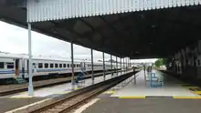 Padalarang Station (PDL)[1] is a railway station complex in Padalarang, West Bandung Regency, West Java, Indonesia. The complex is planned to serve long-distance train services from Kereta Api Indonesia, commuter trains from KAI Commuter, and Jakarta-Bandung high-speed trains from Kereta Cepat Indonesia China (KCIC). The complex is in the form of two different station buildings, each operated by KAI and KCIC, and connected via a pedestrian bridge.