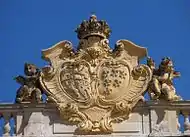 Shield of the Queen Elisabeth Farnese in the main facade.