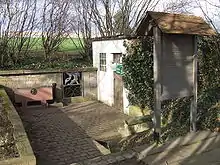 In the more rarely postulated second case, the watershed runs from the Lower Frankenweide onwards in a northeasterly, later more northerly direction. In doing so, it separates the catchment area of the Nahe in the west, to which the Lauter (locally Waldlauter), Alsenz and Appelbach belong, from the sources of the smaller, west Upper Rhine tributaries, namely the Isenach, Eckbach, Eisbach and Pfrimm. From the forest of Stumpfwald in the northern Palatine Forest the watershed enters the North Palatine Uplands, passing immediately west of the summit of the highest point in the Uplands, the Donnersberg (686.5 m).[1] North of Kirchheimbolanden, near Orbis (327 m), it leaves the Palatinate between the source of the Selz, which flows into the Upper Rhine, and the upper reaches of the Nahe tributary, the Wiesbach, and heads into the region of Rheinhessen.[1]