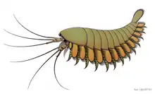 Primicaris Arthropoda Marrellomorpha? An arthropod originally thought to have been a nektaspid, but is now considered a possible marrellomorph.